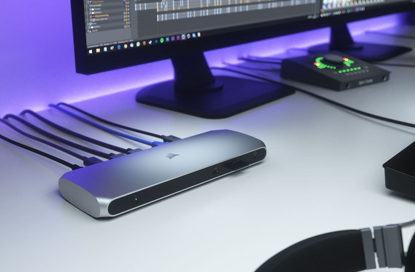 Được biết đế cắm Thunderbolt 3 này được làm bằng nhôm, trang bị hai cổng USB Type-C 10 Gbps và hai cổng 5 Gbps, đồng thời có thể kết nối tối đa 4 thiết bị USB. Đế này còn sử dụng được cho người dùng màn hình kép,đế cắm này được trang bị hai cổng HDMI 2.0 có thể truyền tín hiệu sang hai màn hình 4K 60Hz. Ngoài ra, đế cắm này có giắc cắm âm thanh đầu vào / ra 3,5 mm, cổng Gigabit Ethernet và khe cắm thẻ nhớ SD UHS-II. Corsair TBT100 có thể cung cấp nguồn điện lên tới 85 watt, hỗ trợ hệ điều hành macOS và Windows, tuy nhiên giá bán vẫn chưa được công bố.