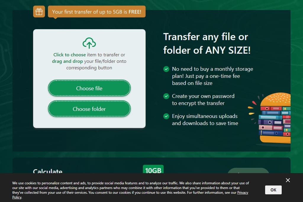- Không cần cài đặt. Một ứng dụng máy tính để bàn giúp tải lên và tải xuống các tệp lớn, sau đó tự động xóa chính nó