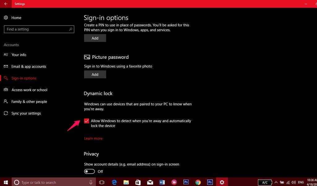 Cách dùng tính năng Dynamic Lock trong Windows 10 Creators Update. (Nguồn:Techrum)