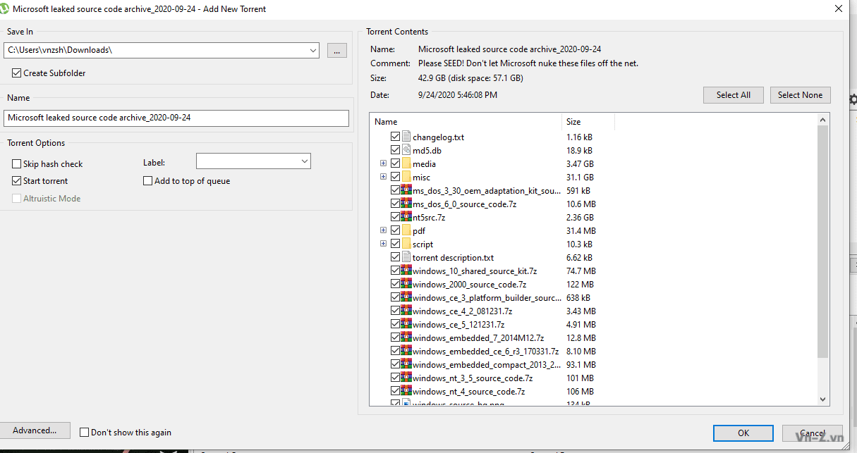 Hiện tại dữ liệu này đang được chia sẻ công khai bằng file torrent