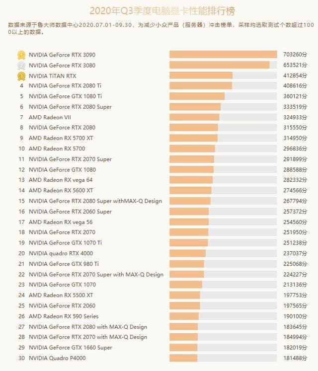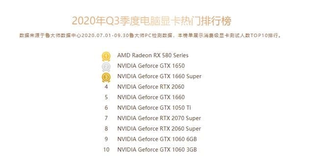 Bảng xếp hạng card đồ họa nhiều phổ biến nhất quý 3/2020, giá của card đồ họa RX 580 đã giảm đồng loạt, trở thành card đồ họa phổ biến nhất trong quý 3. Vị trí thứ hai và thứ ba là card đồ họa tầm trung GTX 1650 và GTX 1660 Super của NVIDIA.