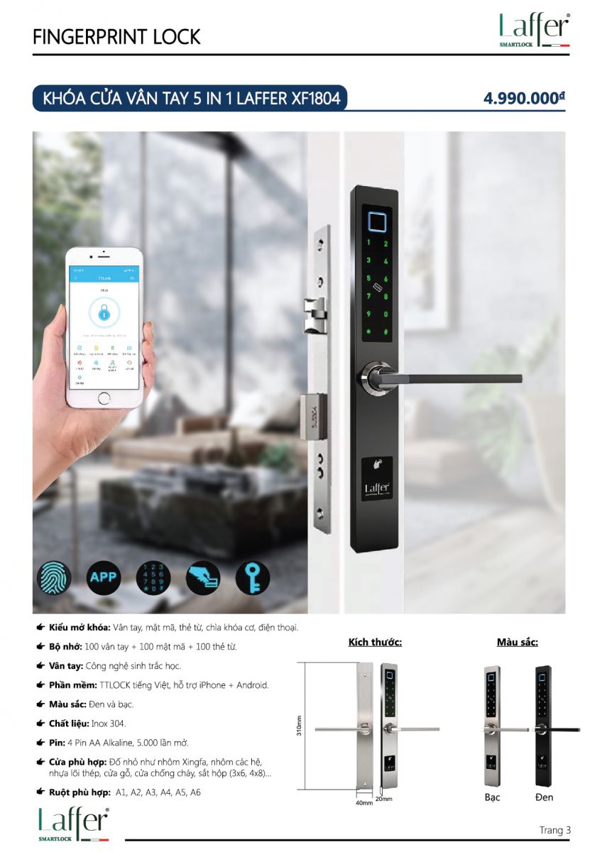 Khóa vân tay Laffer XF1804 cửa nhôm sắt