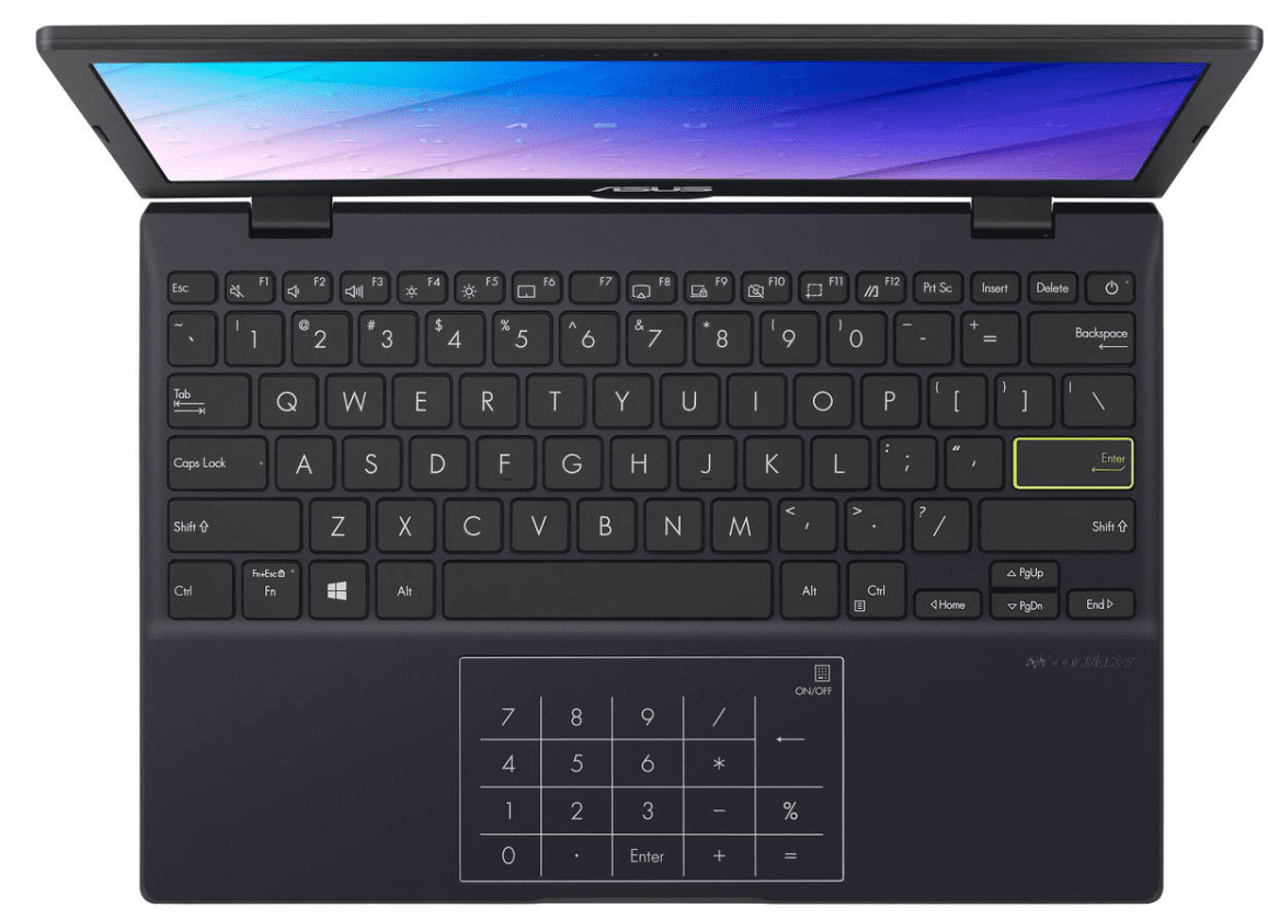 Máy được trang bị NumberPad, bàn phím số ảo được tích hợp tại bàn di chuột 6-inch. Thiết kế này giúp giải quyết được vấn đề thiếu bàn phím số vật lý thường thấy trên các mẫu laptop nhỏ, chỉ cần chạm vào biểu tượng On/Off tại góc phải bàn di chuột để kích hoạt NumberPad.